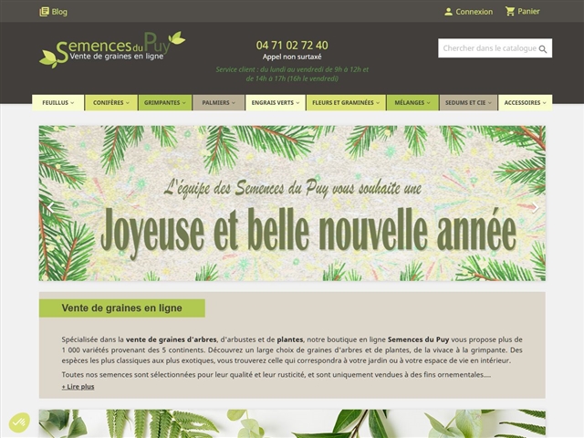 LES SEMENCES DU PUY se trouve dans la commune de Le Puy en Velay dans le département Haute Loire (43). Les horaires d'ouverture de Les Semences du Puy dans la ville de Puy en velay (le) n'ont pas encore été complétés Si vous connaissez les heures d'ouverture et de fermeture du lieu Modifier les heures d'ouverture. Spécialisée dans la vente de graines d'arbres, d'arbustes et de plantes, notre boutique en ligne Semences du Puy vous propose plus de 1 000 variétés provenant des 5 continentsDécouvrez un large choix de graines d'arbres et de plantes, de la vivace à la grimpante Des espèces les plus classiques aux plus exotiques, vous trouverez celle qui correspondra à votre jardin ou à votre espace.