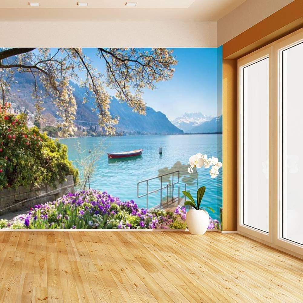 Amazon Com Wall Mural Flowers Mountains And Lake Geneva In Montreux Switzerland Natural Peel And Stick Wallpaper Self Adhesive Wallpaper Large Wall Sticker Removable Vinyl Film Roll Shelf Paper Home Decor Home