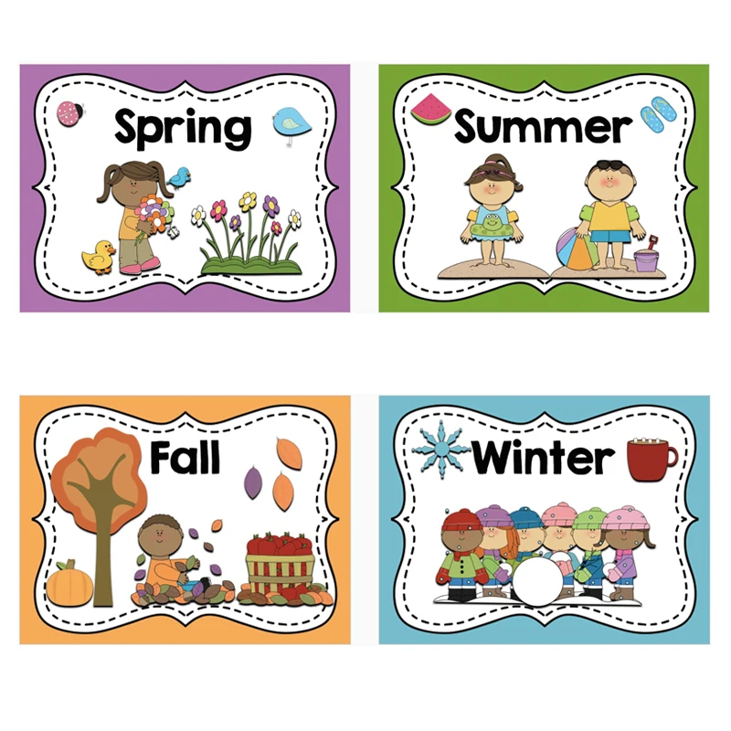 4pcs Set English Card Four Seasons Word Cards Montessori Learning Educational Toys For Children Classroom Wall Decoration Aliexpress