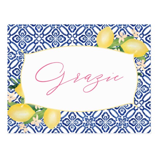 Carte Postale Merci De Douche Grazie Italien Lemons Blue Tiles Zazzle Be