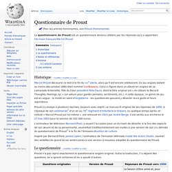 Mes héroïnes dans l'histoire ?. Même si l'écrivain ne l'a pas inventé, un troisième questionnaire, qu'il a écrit, a été découvert par un libraire. Questionnaire de Proust Le questionnaire de Proust a été crée par le célèbre écrivain français Marcel Proust à la fin du 19e siècle Dans sa version finale, il s'était lui même prêté au jeu en apportant une réponse à chacune des questions.