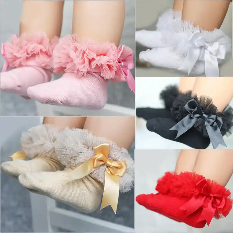 Chaussettes En Coton Pour Petites Filles Avec Nœud Papillon A Volants Princesse Avec Rubans Multicolore Gris Rouge Noir Rose Et Blanc Aliexpress