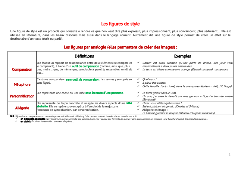 Reviser Les Figures De Style Cahier De Textes De Mme Marchina