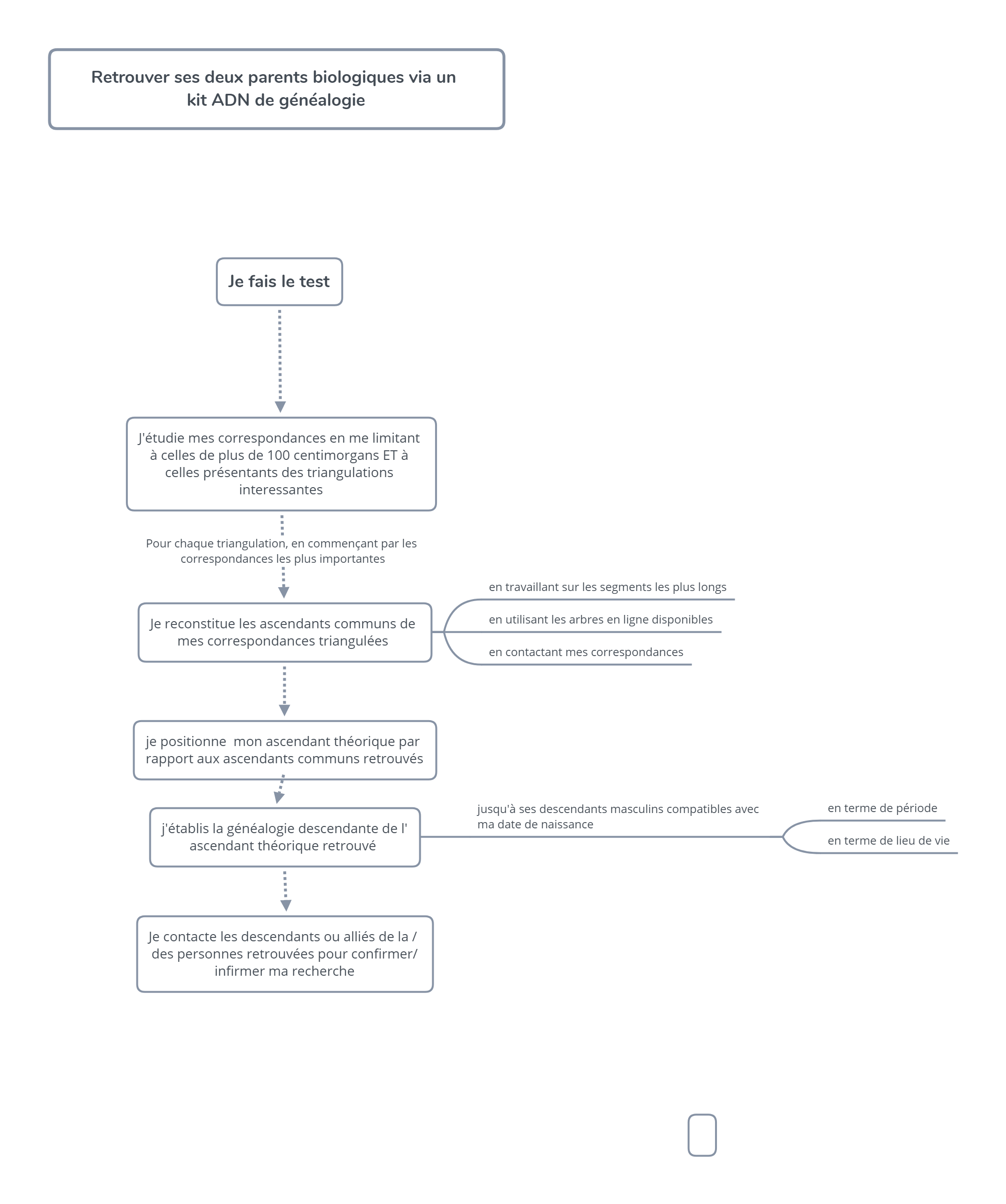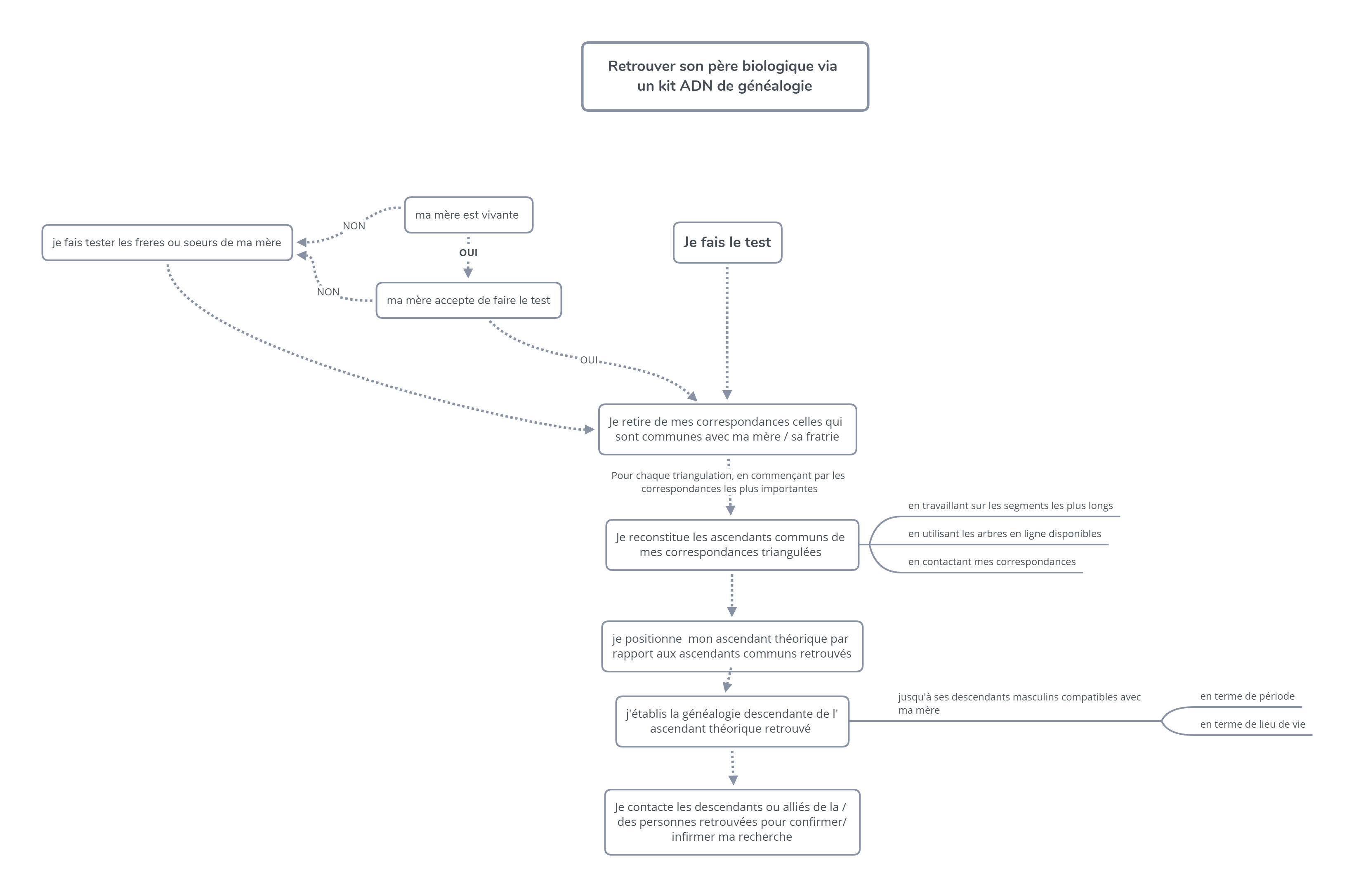 A titre d’exemple, voici l’histoire de Jillian dans sa recherche pour retrouver la famille de son père biologique, après avoir effectué le test d’ADN Histoire de Jillian Jillian a été adoptée à la naissance et son but principal dans les tests ADN était de savoir qui étaient ses ancêtres, d’où ils venaient et d’être en. Voici quelques conseils pour retrouver votre père biologique Tentez le dialogue avec vos parents et vos frère et sœurs Notre premier conseil est toujours de commencer à dialoguer avec vos parents, avec les membres de votre famille dont vous êtes proches (frères ou sœurs). Pour en savoir plus sur le père biologique de l’enfant, il sera possible de faire un test de grandparentalité Il s’agira de retrouver chez l’enfant, des gènes semblables à ceux de ses grandsparents paternels Plus le pourcentage sera élevé, plus il sera facile d’établir la paternité.