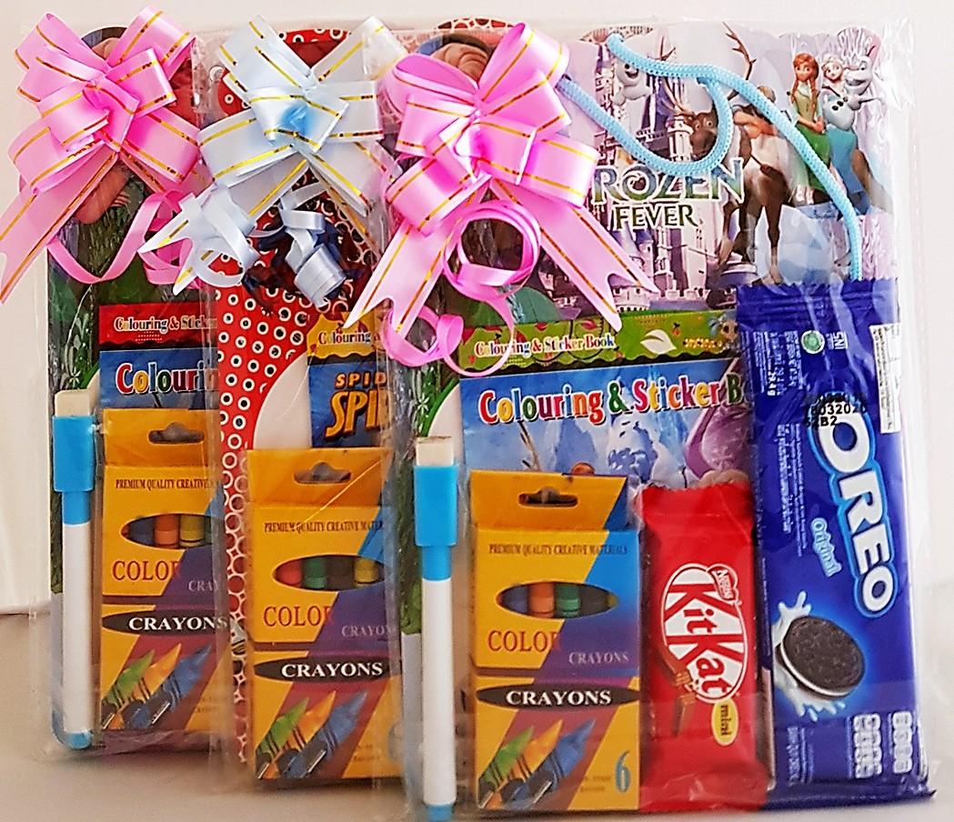 Children Goodie Bag Birthday Goody Bag Whiteboard Colouring Book Sticker Book Snacks Pack Crayons Books Stationery Stationery On Carousell