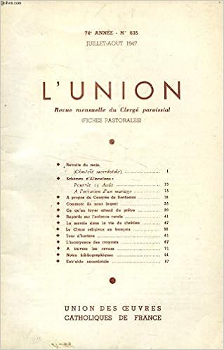 Amazon Fr L Union Revue Mensuelle Du Clerge Paroissial Fiches Pastorales 74e Annee N 635 Juillet Aout 1947 Sommaire Retraite Du Mois Chastete Sacerdotale Schemas D Allocutions Pour Le 15 Aout A L Occasion D Un