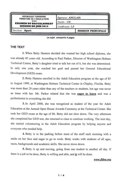 Tunisie Bac 17 Epreuve De L Anglais Pour Les Differentes Sections Tekiano Tek N Kult