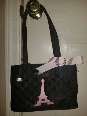Nwt Cmz Black Quilted My Flat In Paris Eiffel Tower Hand Bag Ebay