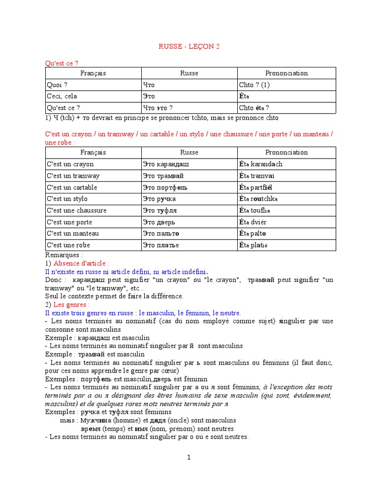Russe Lecon 1 Langue Russe