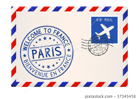 Touristic Stamp Welcome To France Paris On An Stock Illustration