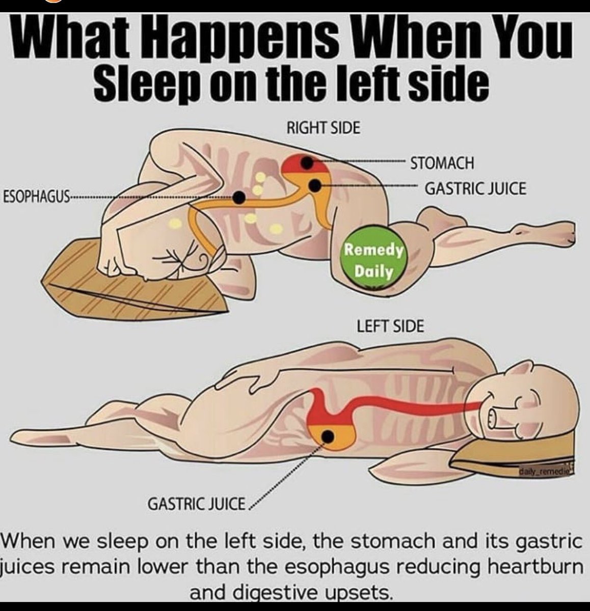 Sleep on your left side Gravity will work in your favor on your left side as your stomach is now positioned below your esophagus, which makes reflux more difficult Should stomach acid escape, gravity is able to return it to your stomach quicker than when on your right side or on your back which is why the left is usually the best side to sleep on to avoid acid reflux. Sleeping on the left side allows gravity to encourage food waste to move more easily from the small intestine into the large intestine through the ICV As the night wears on and you continue to sleep on your left side, waste moves more easily into the descending colon With the help of gravity and a good night’s sleep on the left side, the. This means you’re a positive person and you can handle stress quite well.
