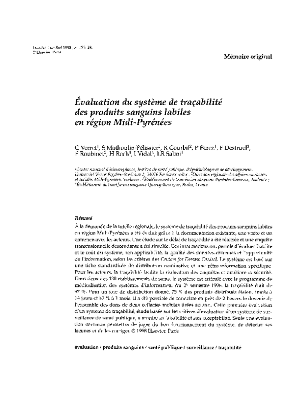 Pdf Evaluation Du Systeme De Tracabilite Des Produits Sanguins Labiles En Region Midi Pyrenees Catherine Verret Academia Edu