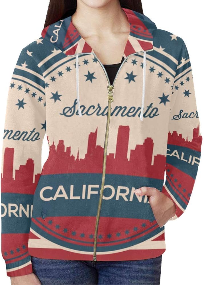 Amazon Com Lumos3dprint California State Sacramento Skyline Women S Full Zip Hoodie Sweatshirt Clothing