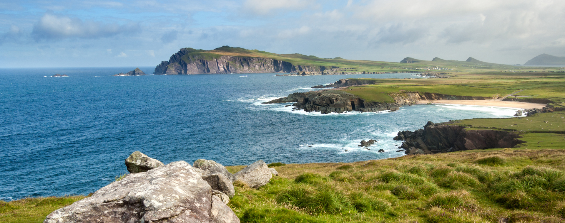 Péninsule de Dingle c'est la pointe la plus à l'ouest de l'Irlande et un lieu hautement touristique pour ses paysages, ses plages, ses falaises, ses petits villages et quelques vestiges historiques. Do come and stay!. Welcome to Dingle Peninsula One of the highlights of the Wild Atlantic Way, the Dingle Peninsula (Corca Dhuibhne) culminates in the Irish mainland's westernmost point In the shadow of sacred Mt Brandon, a maze of fuchsiafringed boreens (country lanes) weaves together an ancient landscape of prehistoric ring forts and beehive huts, early Christian chapels, crosses and holy wells, picturesque hamlets and abandoned villages.