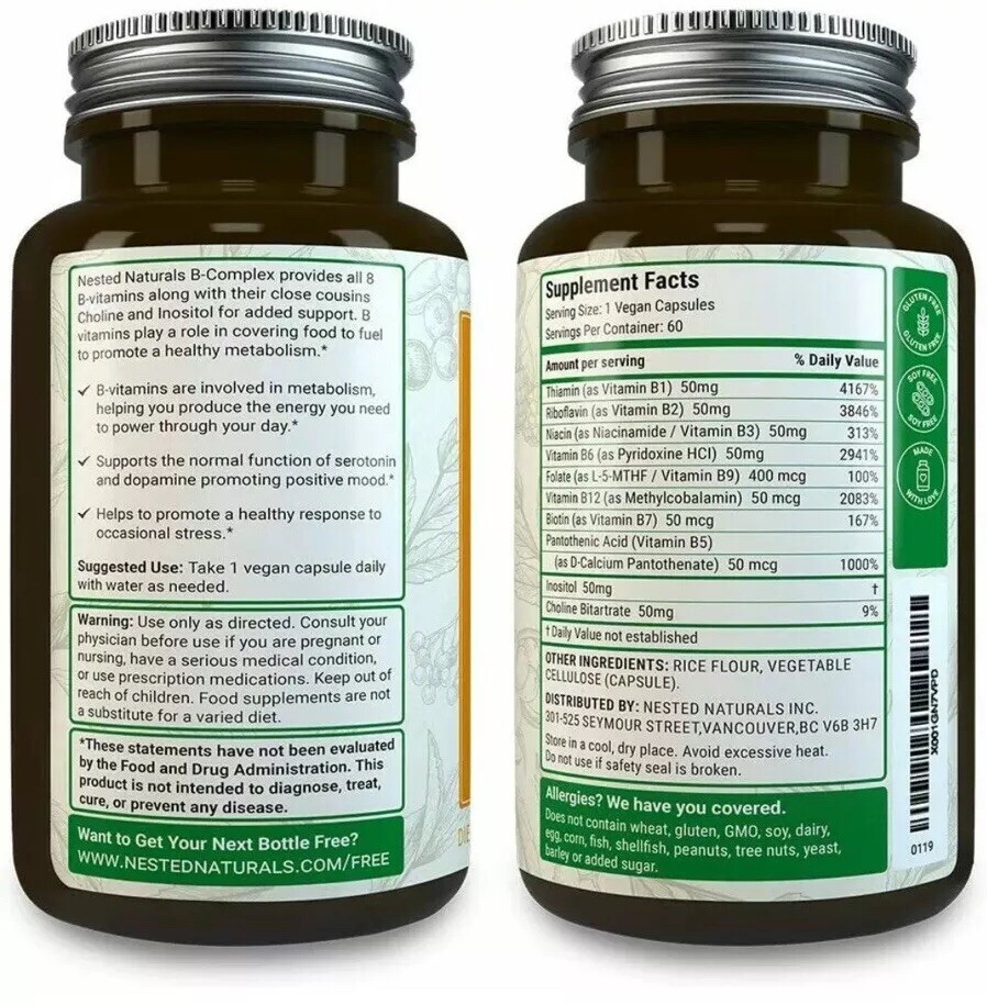 Vitamin B Complex Plus Choline Inositol By Nested Naturals 60 Vegan Capsules For Sale Online Ebay