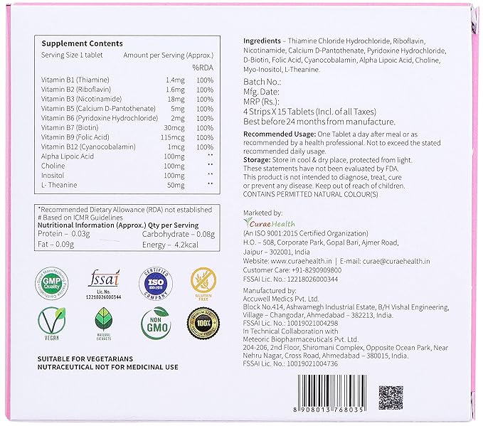 Curae Health Bentac For Energy Immunity Andmetabolism Boost Brain Support Mood Management Control Haemoglobin Complete Vitamin B Complex Choline Inositol Ala Amino Acid 60 Vegan Tablets Amazon In Health Personal Care
