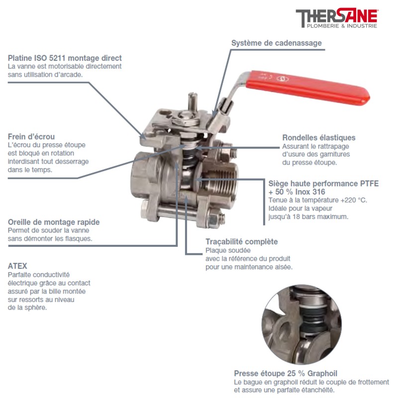 Presse etoupe de vanne. 4 Regarder si la vanne est endommagée par des gaz ou liquides corrosifs 438" Nettoyer la vanne et repeindre les zones fortement oxydées 44 Vérifier le presseétoupe En cas de fuite perdurante, changer la garniture en se référant à la section démontage et remontage 45 Si la vanne est fournie avec un graisseur, vérifier le. Vanne boisseau sphérique M/F manette avec presse étoupe Produit "Une résistance haute qualité certifiée NF par le CSTB Vanne conforme aux règles de la certification de la marque NF 079.