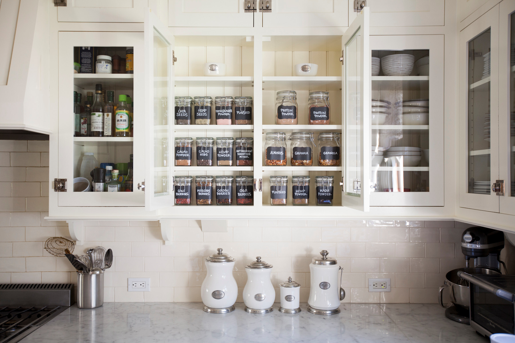 Create An Organized Smoothie Cabinet In Your Kitchen Right Next To The Blender With All Your Protein Bars For Home Smoothie Bar Household Cleaning Organization