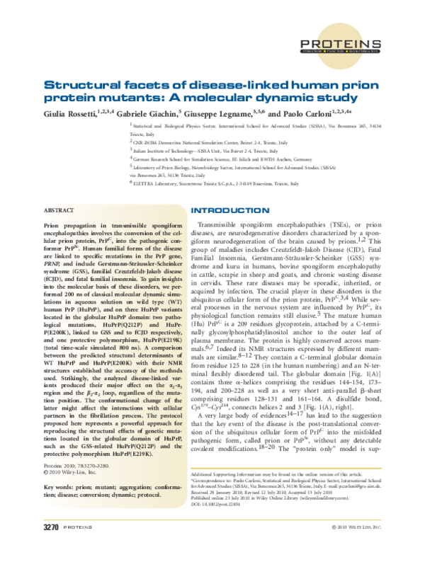 Pdf Structural Facets Of Disease Linked Human Prion Protein Mutants A Molecular Dynamic Study Gabriele Giachin Academia Edu