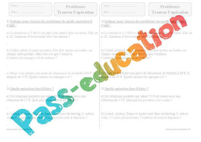 Trouver L Operation Ce2 Problemes Exercices Corriges Mathematiques Cycle 3 Par Pass Education Fr Jenseigne Fr