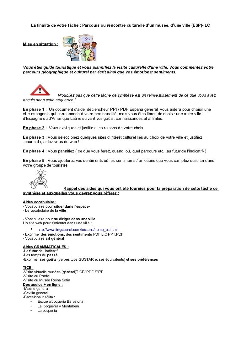 Consignes Lc Tache Synthese Art Ville Espagnol