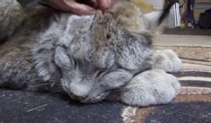 Cet Enorme Lynx Se Met A Ronronner Comme Un Chaton Des Qu On Lui Caresse La Tete Video
