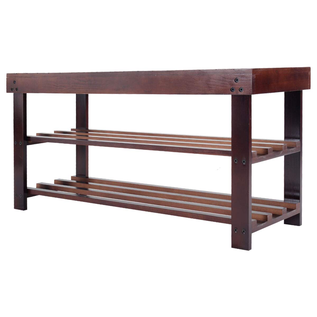 Nanapluz 36 Espresso 2 Tire Functional Hallway Wood Shoe Bench Rack Entryway Storage Organizer Seat With Ebook Bookcases Cabinets Shelves Toys Games