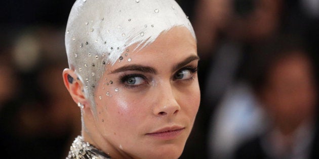 Cara Delevingne Le Crane Rase Et Argente Au Met Gala 17 Le Huffpost