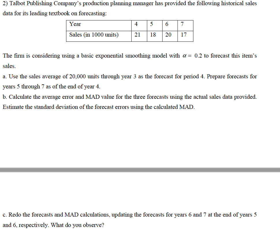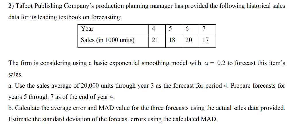 Solved 2 Talbot Publishing Company S Production Planning Chegg Com