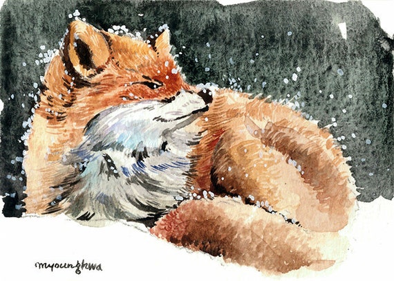 Aceo Limited Edition 6 25 Winter Fox Red Fox Snow Red Fox Etsy