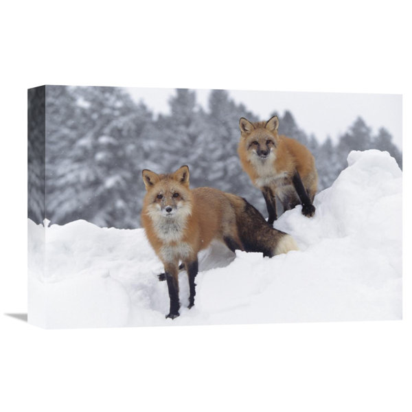 East Urban Home Red Fox Pair In Snow Fall Showing The Black And Red Markings Of Their Cross Phase Montana Photographic Print On Wrapped Canvas Wayfair