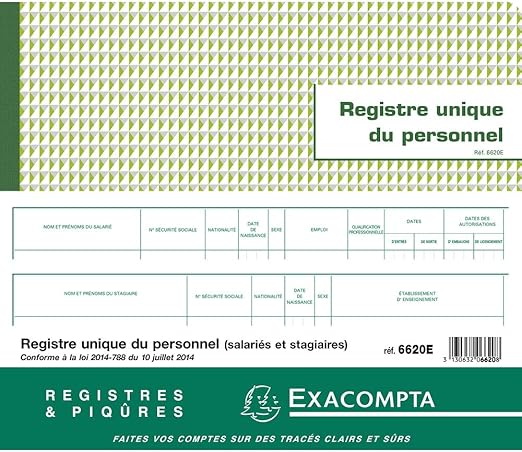 Exacompta Ref 66e 1 Piqure 27x32cm Registre Unique Du Personnel Salaries Et Stagiaires 56 Pages Amazon Fr Fournitures De Bureau