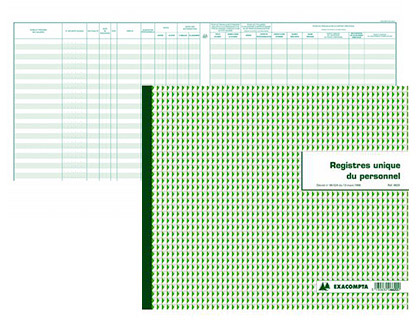Registre unique du Personnel et Stagiaires Inscription des entrées et des sorties Format 210 x 297 mm Piqûre 48 pages imprimées Référence ELVE 1464. Et des fonctionnaires et agents chargés. Tout employeur doit obligatoirement détenir et conserver plusieurs registres (registre unique du personnel, registre sur les conditions de travail, registre des délégués du personnel) Les registres doivent comporter certaines mentions et informations obligatoires La nontenue de ces registres peut être passible de sanctions pénales.