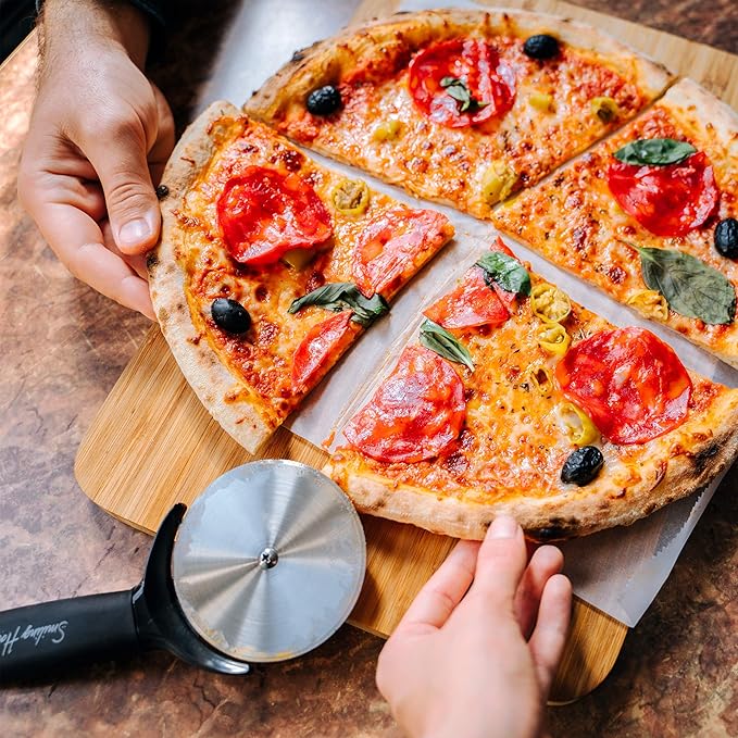 Taille L Couleur Argent Coupe Pizza En Acier Inoxydable Avec Poignee Anti Derapante Trancheuse A Pizza Roue Pizza Kitchen Tool Va Au Lave Vaisselle Et Roulettes A Pizza Cuisine Maison