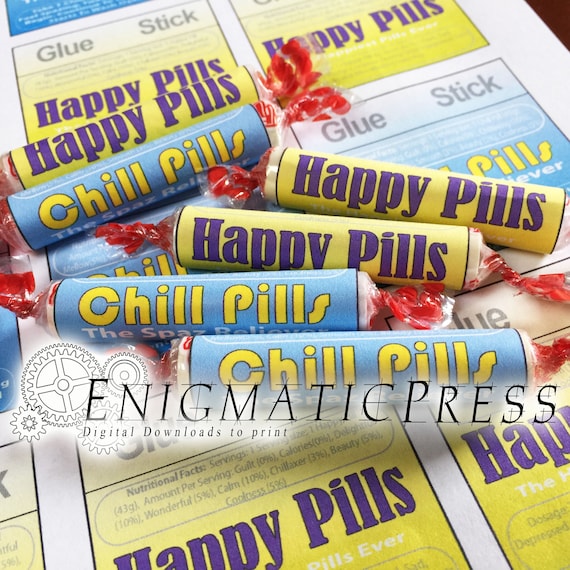 Chill Pills And Happy Pills Smarties Candy Wrapper Fun Labels Etsy