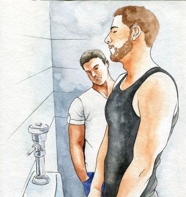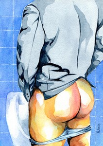 Print Of Original Art Work Watercolor Painting Gay Male Nude Public Toilet 5 Ebay