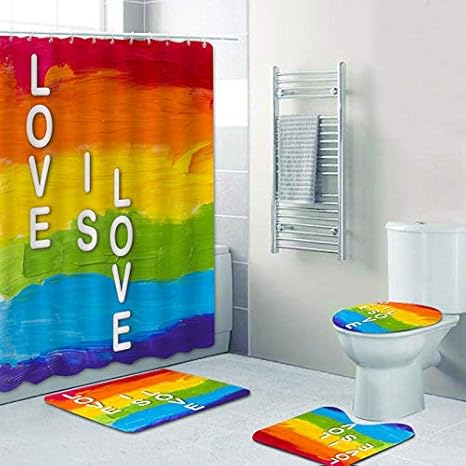 Amazon Com Fashion Man 16pcs Set Colorful Rainbow Shower Curtain Polyester Bath Curtain Waterproof Bathtub Curtains Bath Mat Toilet Rug Gay Pride Lesbian Peace Lgbt Bathroom Decor 72 X72 Hooks Love Is Lvoe Home Kitchen