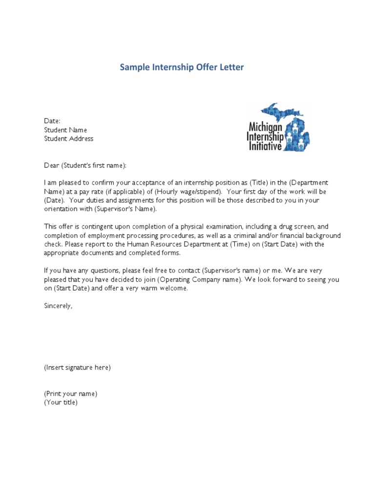 Student Internship Offer Letter Template Ii Creativity Curriculum