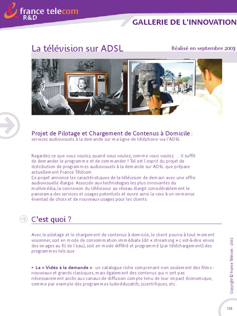 »7 offres de TV par ADSL à la loupe Offre par offre, voici un comparatif des points forts et des points faibles de chaque FAI Lire » Le guide complet Quel prix allezvous payer ?. Démarrage de la STB et liste des chaînes de télévision au 29 septembre 07. Sinon, le seul équipement spécifique est le décodeur TV sur ADSL qu'on relie au téléviseur par un câble Peritel Ce boîtier se branche sur le modem ADSL ?" ou sur la prise téléphonique.