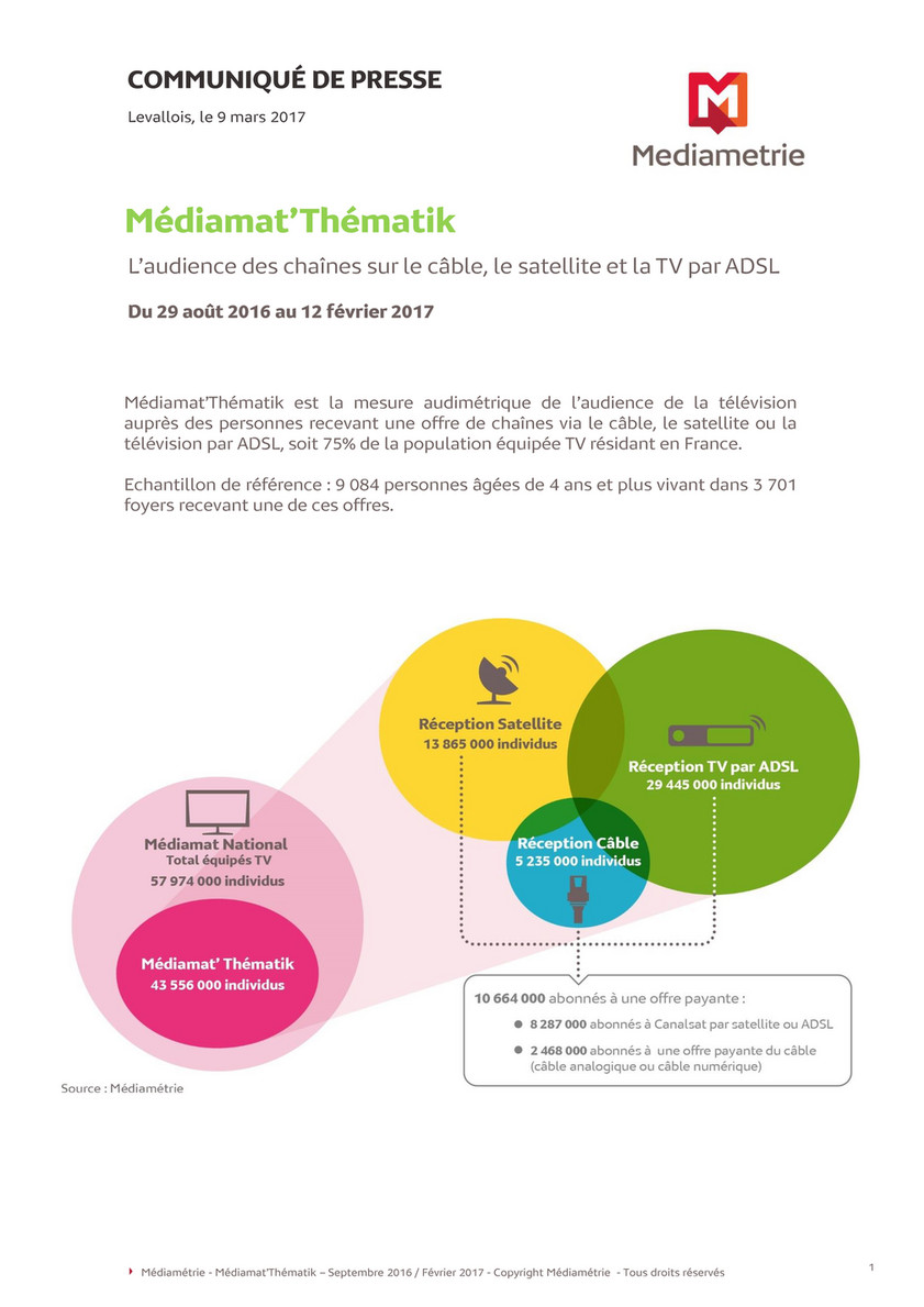 Mediamat Thematik L Audience Des Chaines Sur La Tv Par Satellite Adsl Cable Ou Fibre Optique Mediametrie