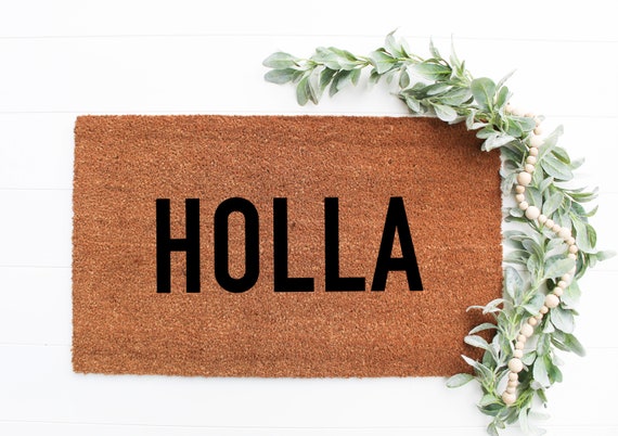 Holla Doormat Tapis De Porte Peint A La Main Citation Unique Etsy