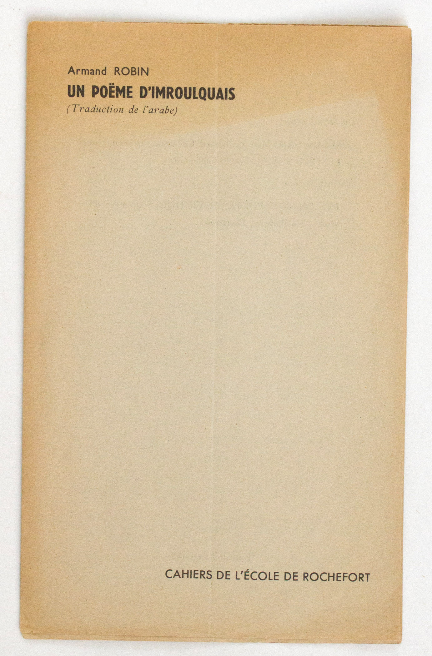 Un Poeme D Imroulquais Traduction De L Arabe By Robin Armand Imrou L Qays 1944