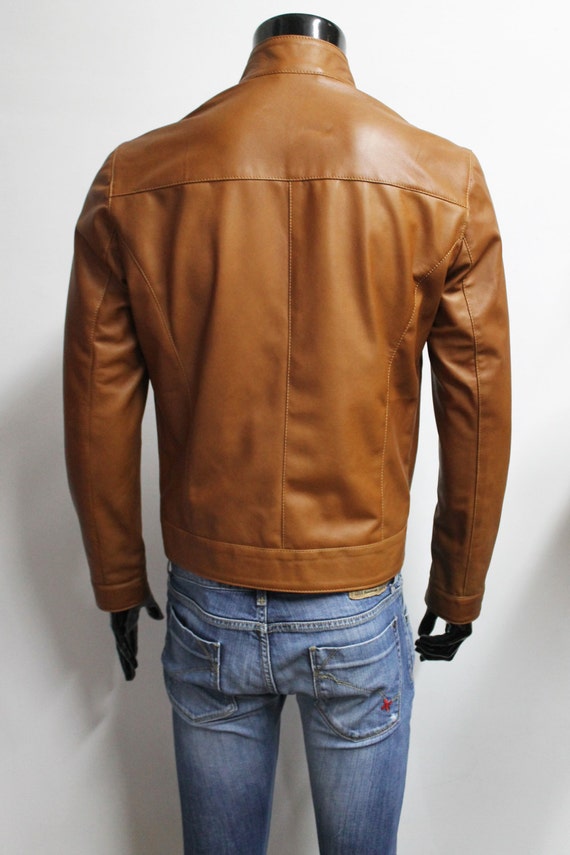 Italian Handmade Men Genuine Lambskin Leather Jacket Color Etsy