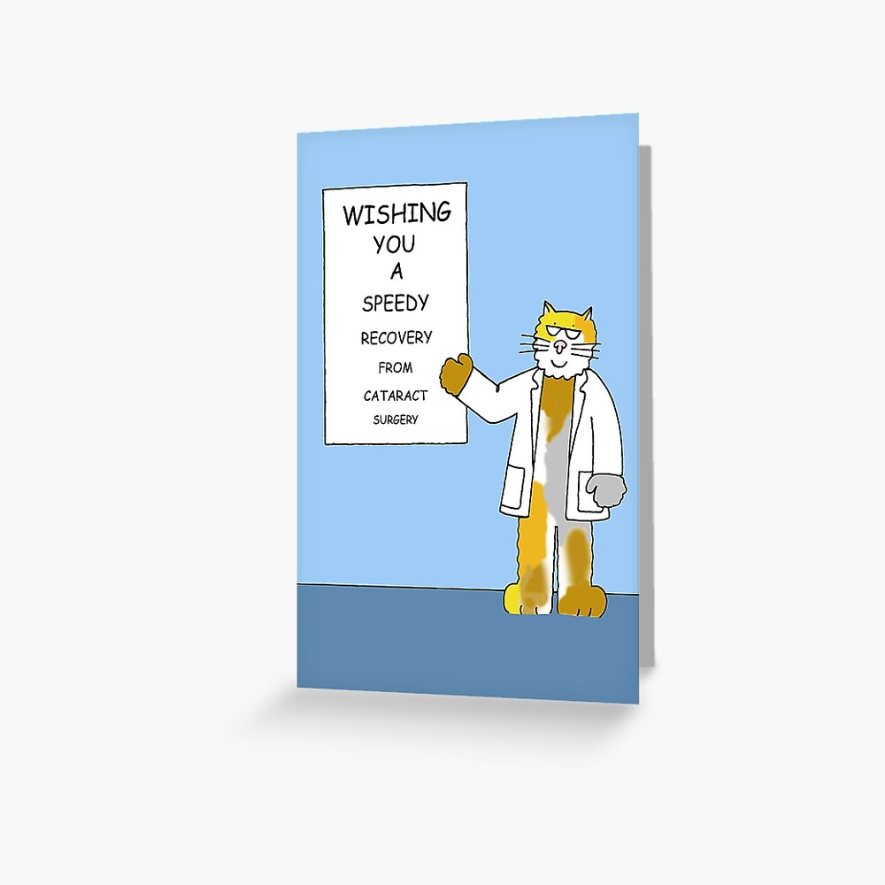 Carte De Vœux Chirurgie De La Cataracte Chat De Dessin Anime De Recuperation Rapide Avec Tableau De Vue Par Katetaylor Redbubble