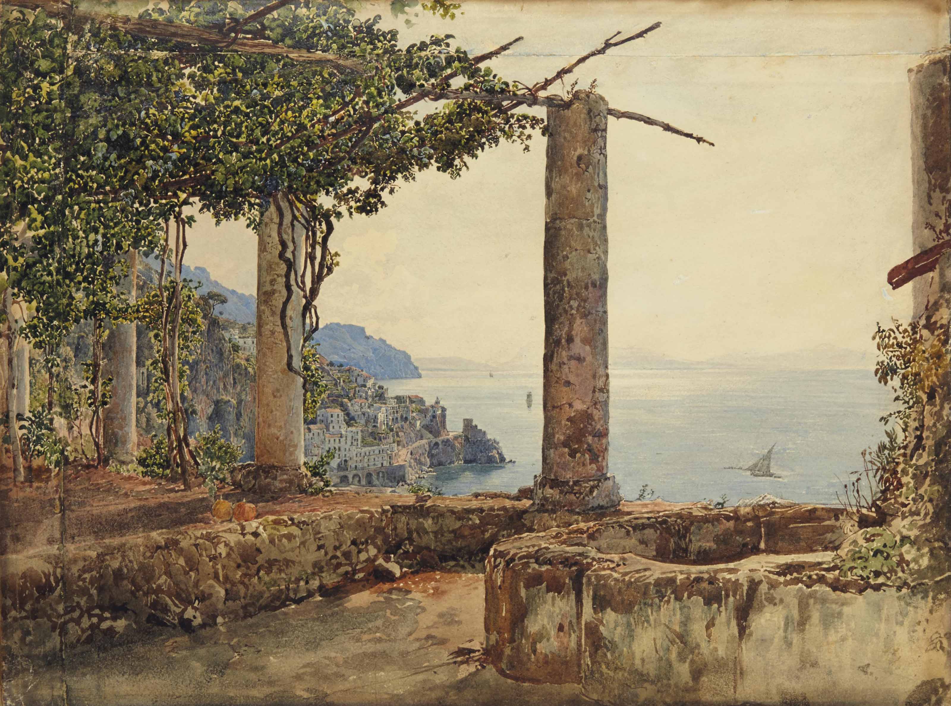 Rudolf Von Alt Vienne 1812 1905 Amalfi Et Le Golfe De Salerne Vus De La Terrasse Du Cloitre Des Capucins Christie S
