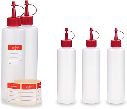 Octopus 5 X 250 Ml Bouteilles En Plastique Hdpe Par Exemple Pour Les E Liquides E Cigarettes Bouteilles De Liquide Bzw Bouteilles En Plastique Avec Bouchons Rouges Pour Injection Goutte Amazon Fr Cuisine Maison