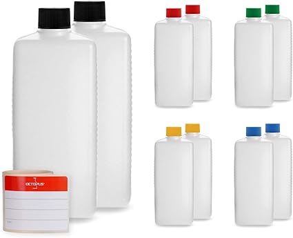 Octopus 10 X Bouteilles En Plastique De 1000 Ml Hdpe 1 Litre Bouteilles Rondes Avec Bouchons A Vis Ou Couvercles Noirs Bouteilles Vides Avec Filetage De 25 Mm Etiquettes D Etiquetage Incluses Amazon Fr