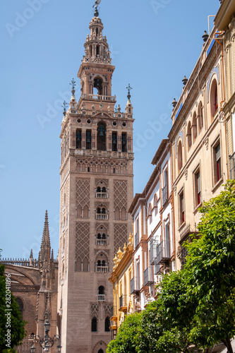 La Giralda Tower In The City Centre Of Sevilla Andalusia Spain Built With 3 Different Styles And Religions Stock Photo Alamy