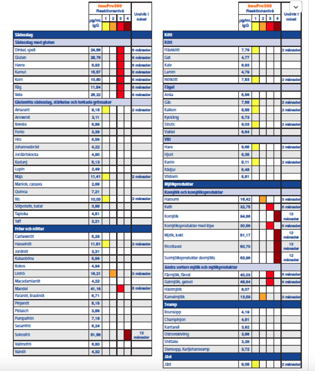 Allergy Testing ImuPro300 ImuPro300 , IgE, FACT Tests, and Vega Testing There is much hype, spin and confusion about allergy tests and food intolerance testing and many dubious claims and unproven methods that help to confound the issues. The following foods are with ImuPro 300 Meat beef, chicken, deer, duck, goat, goose, hare, lamb, ostrich, pork, quail, rabbit, roe deer, turkey hen, veal, wild boar Cereals (with gluten) barley, gluten, kamut, oats, rye, spelt, wheat Alternatives to cereals / starchy products amaranth, arrowroot, buckwheat, carob,. ImuPro 300 este prescurtarea obtinuta prin asocierea cuvintelor "Imun" , "profil" si a numarului aproximativ de alimente fata de care se face testarea Dar ce avem de facut dupa testare?.
