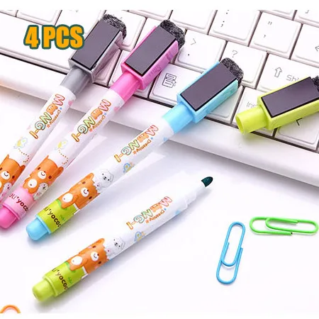 4 Pcs De Bande Dessinee Mignon Marqueur Pour Tableau Blanc Magnetique Tableau Blanc Stylo Effacable A Sec Tableau Blanc Marqueurs Stylos Aimant Construit En Gomme Aliexpress